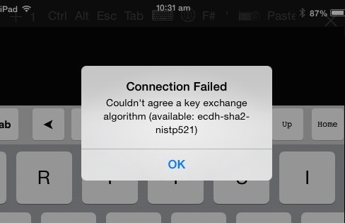ERMAHGERD. It seems iSSH, in a way similar to standard OS X, doesn’t support the cipher suite required to connect to the production Ubuntu EC2 instances. If only there was some kind of way to have this SSH session connect via a different, more capable SSH session. You know, like in some kind of utopian future with flying cars and compulsory spandex.