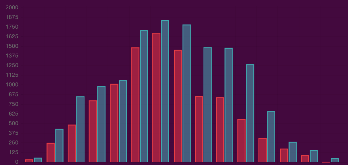 So, we’d implemented the core component which was streaming the data real-time into BigQuery. Next up was a straight forward Spring application that used the Google Java library to talk to BigQuery and provide a REST interface for the front-end. I’m not going to delve into the mechanics of that in this blog post. Instead, let’s take a look at how we actually animated the data through visualisations.