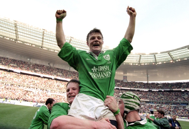 19 Mar 2000: Brian O”Driscoll of Ireland takes centre stage after his hat-trick during the Six Nations 2000 Championship match against France played at the Stade De France, in Paris, France. Ireland won the match 27-25. Mandatory Credit: Dave Rogers /Allsport